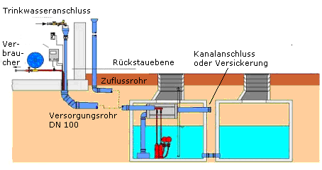 im Erdgeschoss mit Nachspeisung oberhalb der Rückstauebene